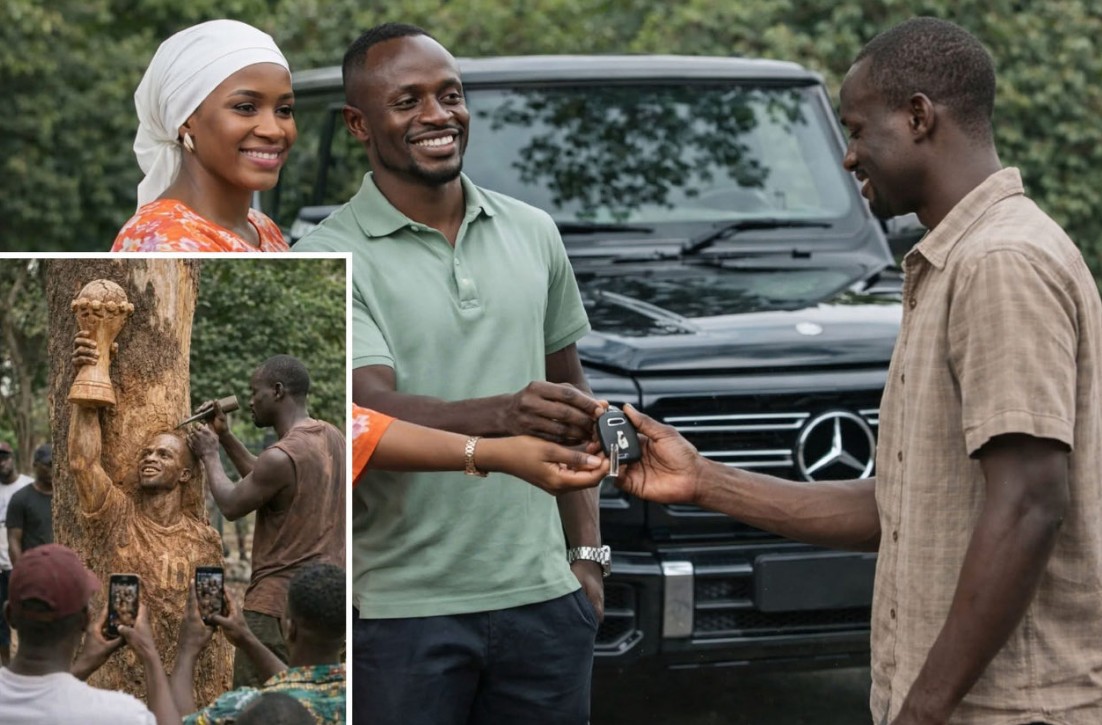 The man who carved Sadio Mané’s image into a tree in his family compound to celebrate Senegal’s AFCON victory has just received a brand-new Benz and a lifetime opportunity from Mané and his wife.