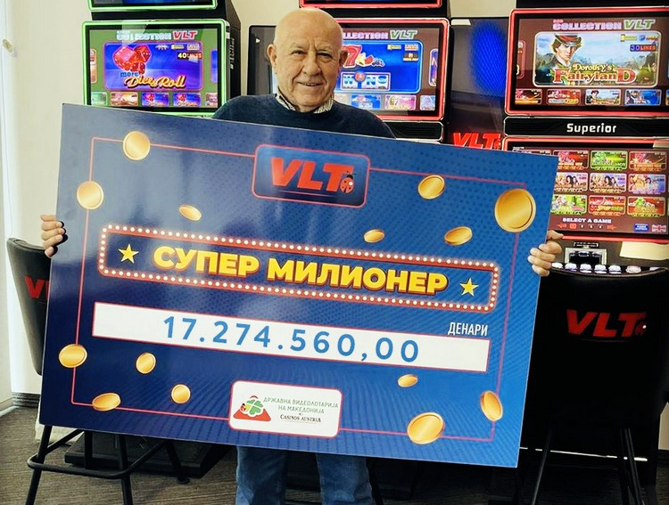 Санде Лалевски од Скопје е нашиот најнов среќен добитник на СУПЕР МИЛИОНЕР. Тој на 13.03.2024 бил на гости во Демир Капија и посакал да се забавува на видеолотариските терминали од Видеолотарија Касинос Австрија играјќи ја играта Фламинг хот. Ова се покажало како одлична одлука, затоа што тој го освои џекпот СУПЕР МИЛИОНЕР вреден 17.274.560 денари. Во тој момент, а и потоа, Санде се чувствува пресреќно. Веќе почнува да го подготвува планот како ќе ги троши освоените 17.274.560 денари.