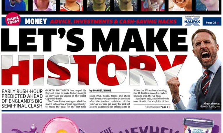 Герет Саутгејт ја имаше поддршката на англиската јавност уште кога го поведе исклучително младиот англиски фудбалски состав на Светското првенство во Русија. Сега кога „трите лава“ се полуфиналисти, Саутгејт го има статусот на национален херој. Неговата улога во успехот на англиската репрезентација е повеќе од очигледен, а е и многу високо ценета, не само од фудбалската туку и од целокупната јавност во државата. Нацијата е сплотена во големата надеж, конечно, националниот фудбалски тим, да има вистински успех. Вечерва во Москва, Англичаните ќе бијат битка за влез во финалето на Мундијалот.