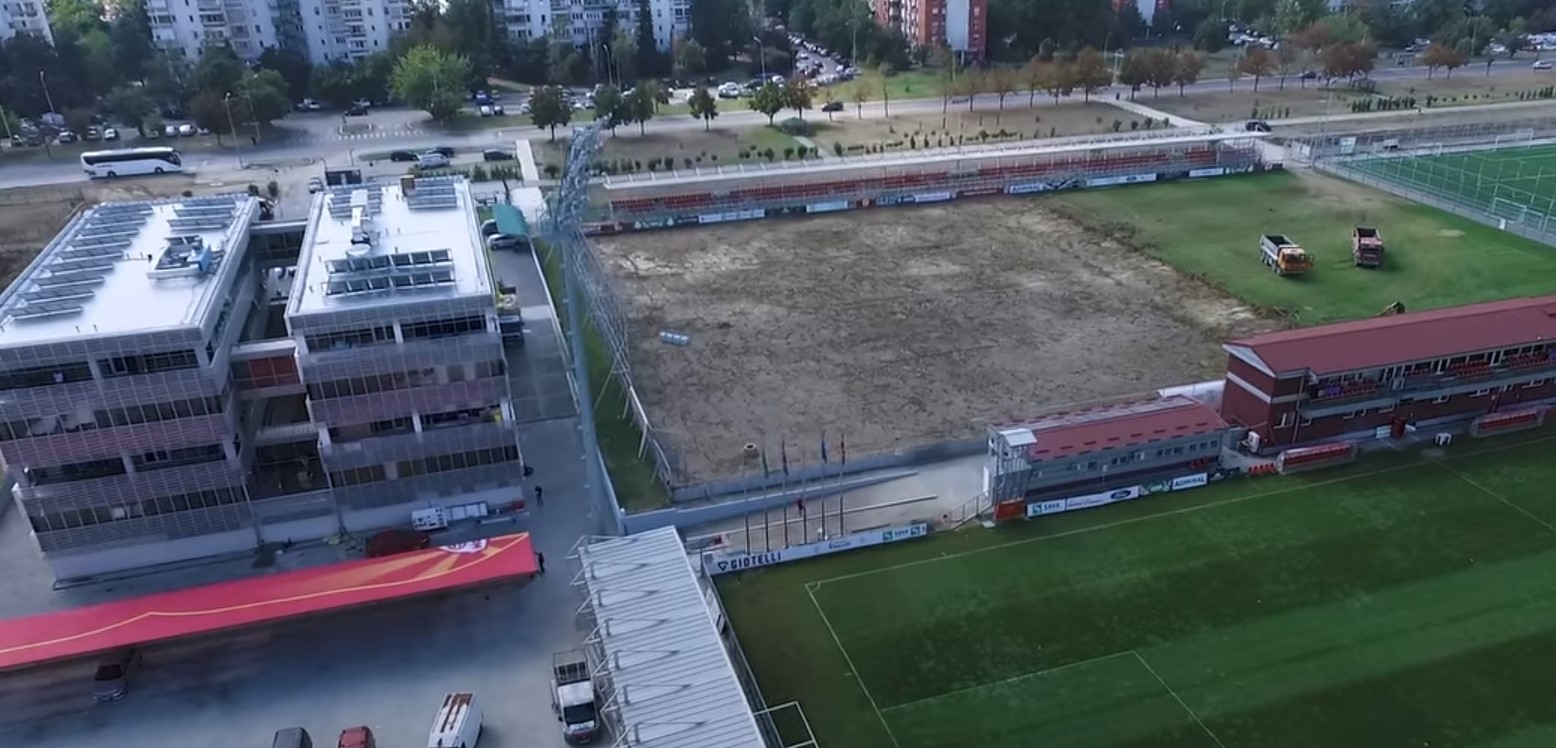 Се обновува тревната површина на еден од терените во близина на зградата на федерацијата. Се поставува нов тревник, нов паркинг простор и пристап до трибините.