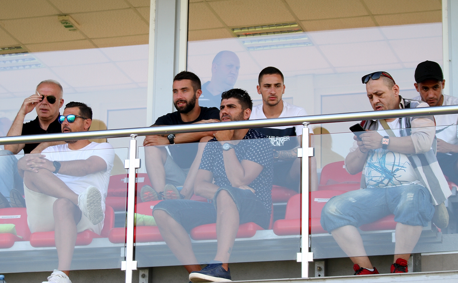 Во ложата се и претседателот на клубот Мирко Спасески, но и Илија Најдоски како и поранешниот македонски селектор Ѓоре Јовановски.