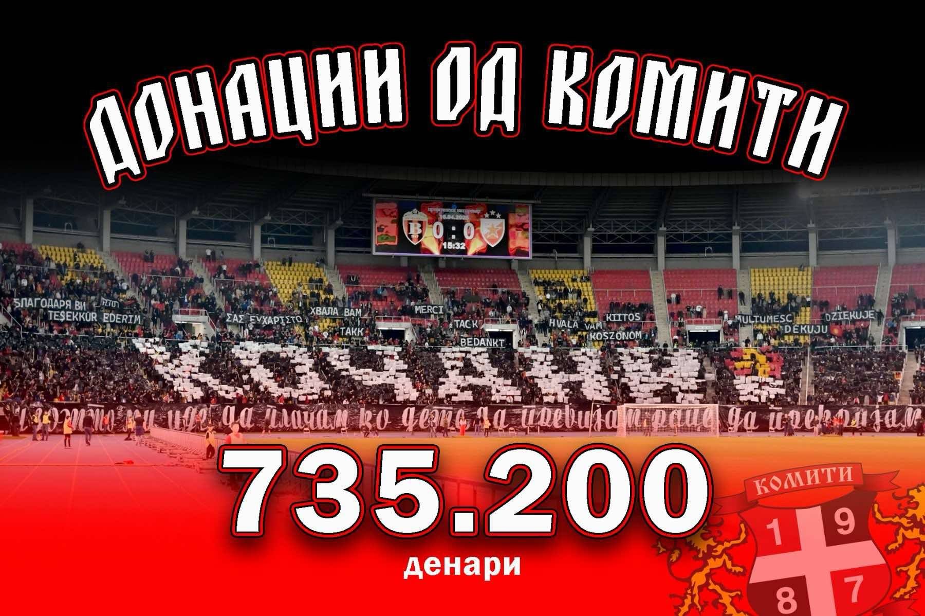 Навивачката група Комити уште еднаш ја потврди својата солидарност и човечка големина, откако преку низа кампањи собра над 12.000 евра за семејствата на жртвите во страшната трагедија во Кочани.