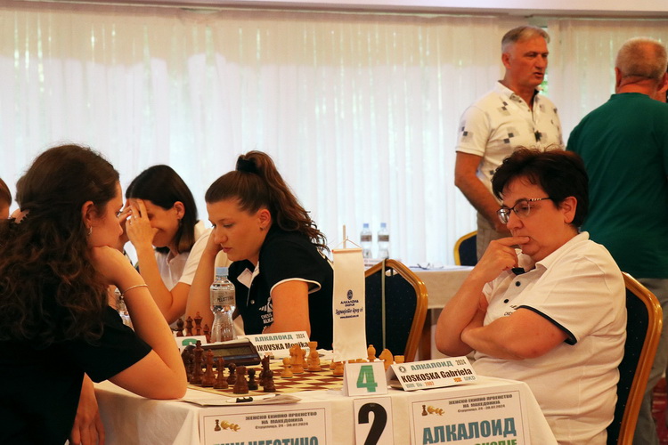 На првенството во женска конкуренција шахистките на Алкалоид ја забележаа третата победа во низа. Во третото коло со 3,5 : 0,5 беше совладан тимот на ГШК Куманово 1, при што победи остварија ВМ Бела Котенашвили, ЖФМ Моника Стојковска и ЖИМ Габриела Коскоска. Единственото реми беше на втората табла, каде што во завршницата топ и ловец против топ, на потег пред остварување конечна победа, противничката на ИМ Саломе Мелиа рекламираше реми со правилото 50 потега без сменета фигура, односно пешак, по што следуваше поделба на поенот.