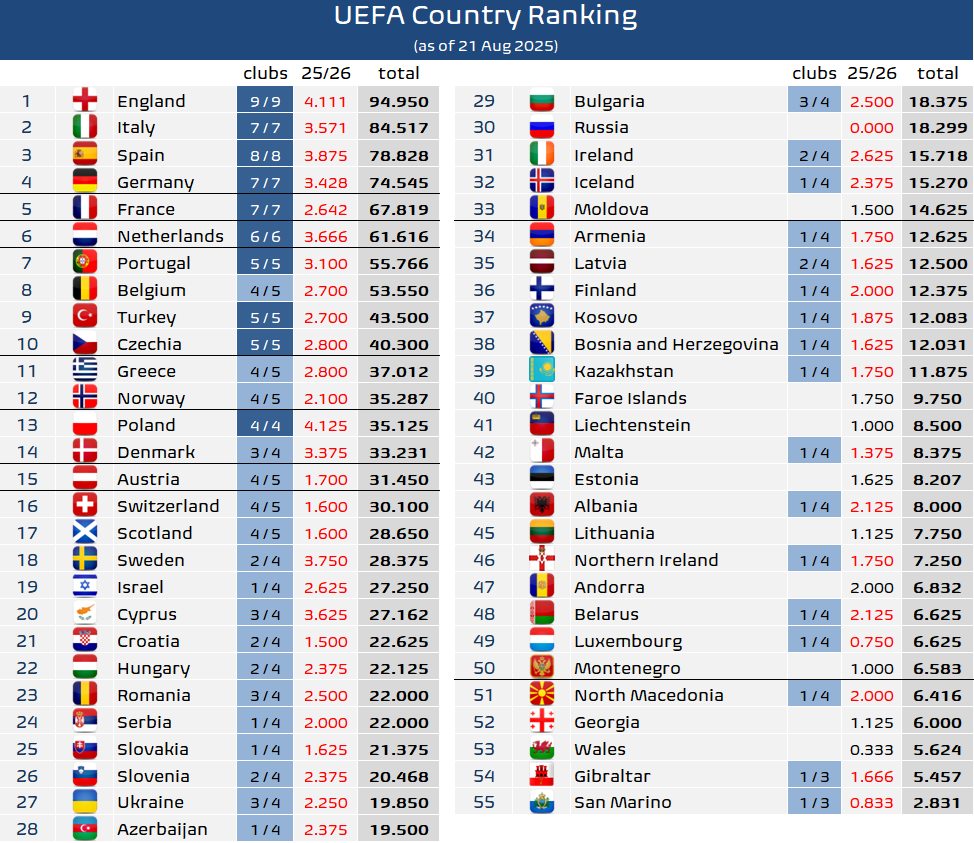 Синоќешната победа над бугарскиот шампион Лудогорец од 2-1 донесе повисок рејтинг-коефициент за Македонија, па сега со коефициент – 6.416 веќе сме само на чекор од позицијата која носи за следната сезона и можност за македонските клубови повторно настапи во квалификациите за Лигата на Европа.