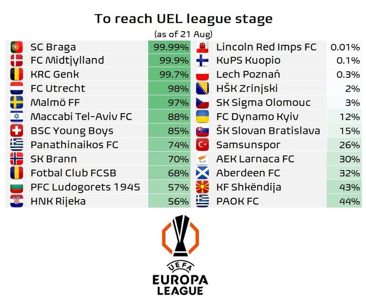 Исто така, согласно статистичката веројатност, Шкендија сега е со речиси сосема израмнети шанси со бугарскиот Лудогорец, за место во групите од Лигата на Европа.