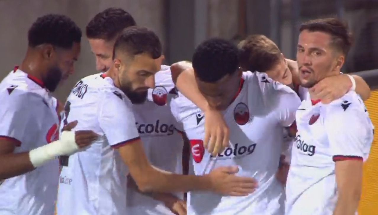 На асистенција на Ибраими, Тамба во полн трк ја прими топката, излезе сам пред голот на Пад, и го совлада за 2-1, и вкупни 3-3.