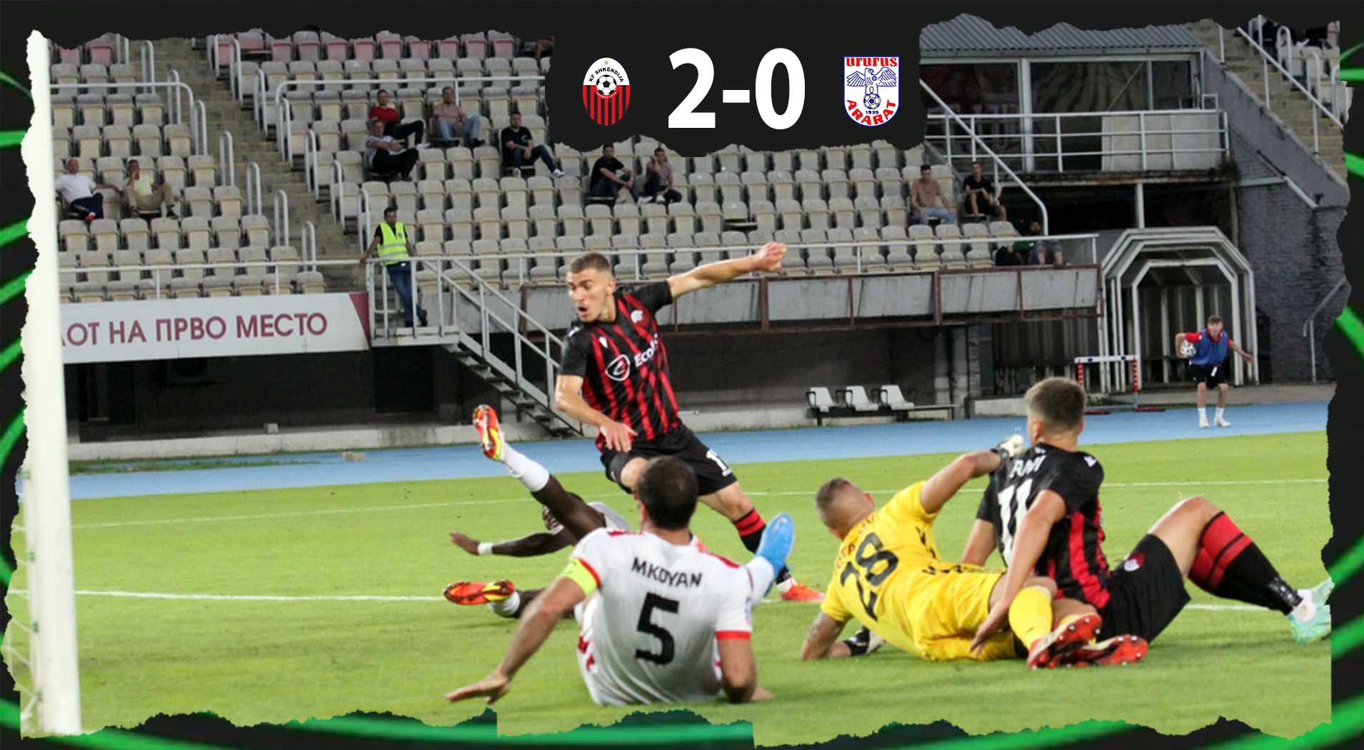 Шкендија дојде до солидна предност против Арарат во првиот меч од 1. квалификациско коло во Конференциската Лига. Тетовци со головите на Шала и на Нафиу уште во првиот дел, славеа со 2-0, и со добар резултат патуваат во реваншот во Ереван. Главните настани се одвиваа во првиот дел кога паднаа и двата гола, и кога имаше и повеќе шанси. Дека Шкендија не треба да се опушта на реваншот, покажаа трите добри прилики на Ерменците во првиот дел, кога Захов на три пати мораше да спасува, и да ја сочува мрежата.