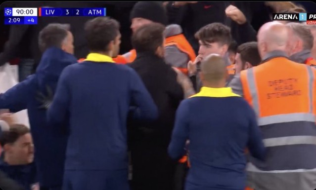 Супердраматично беше синоќа на „Енфилд“, Ливерпул стигна до победа со голот на Ван Дајк во 92. минута, а гостинскиот тренер Диего Симеоне не можеше да се помири со поразот, па влезе во сериозен кофликт со домашните навивачи.