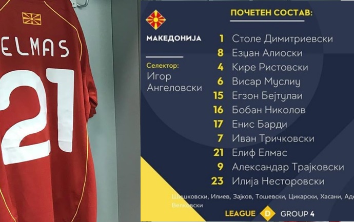 Селекторот Игор Ангеловски во тимот ќе ги има повратниците Елиф Елмас и Езгијан Алиоски, а на сметка на Горан Пандев и Стефан Спировски кои отпаднаа поради жолти картони односно повреда. Покрај Елмас и Алиоски во средниот ред ќе бидат уште и Енис Барди и Бобан Николов, а Аријан Адеми ќе биде на клупата за резервни фудбалери.