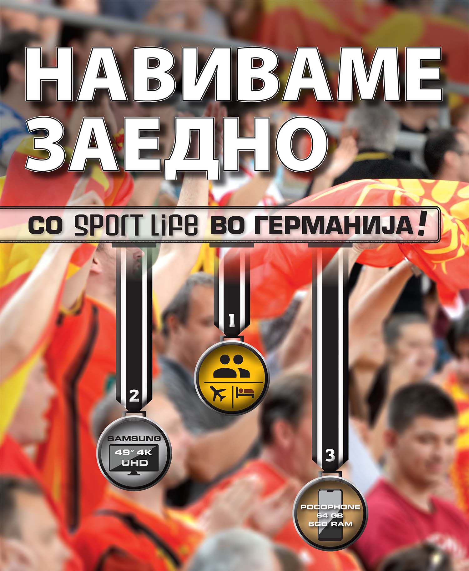 Спорт Лајф ве носи во Германија на светското првенство во ракомет за мажи, во јануари. Можноста да се навива во живо, таму каде што нашите најдобри ракометари ќе си ги одмерат силите во светски рамки, ќе ја има играчот кој ќе „фати“ највисок вкупен коефициент на тикет со една комбинација, уплатен со приложена Sport Life клуб-картичка во периодот до 31 декември 2018 год.