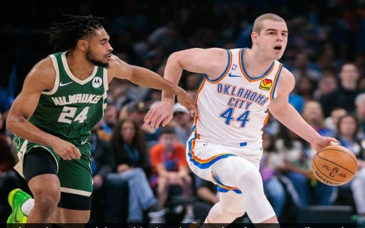 Откако мината седмица одигра два меча во развојната Џи-лига, Топиќ вечерва заигра и за првиот тим на Оклахома Сити тандер, настапувајќи на домашниот дуел со Милвоки. Неговото влегување во игра беше проследено со овации од соиграчите и сите присутни во арената, а младиот Србин мина на теренот 12 минути, реализирајќи 2 поени, 1 скок и 1 асистенција.