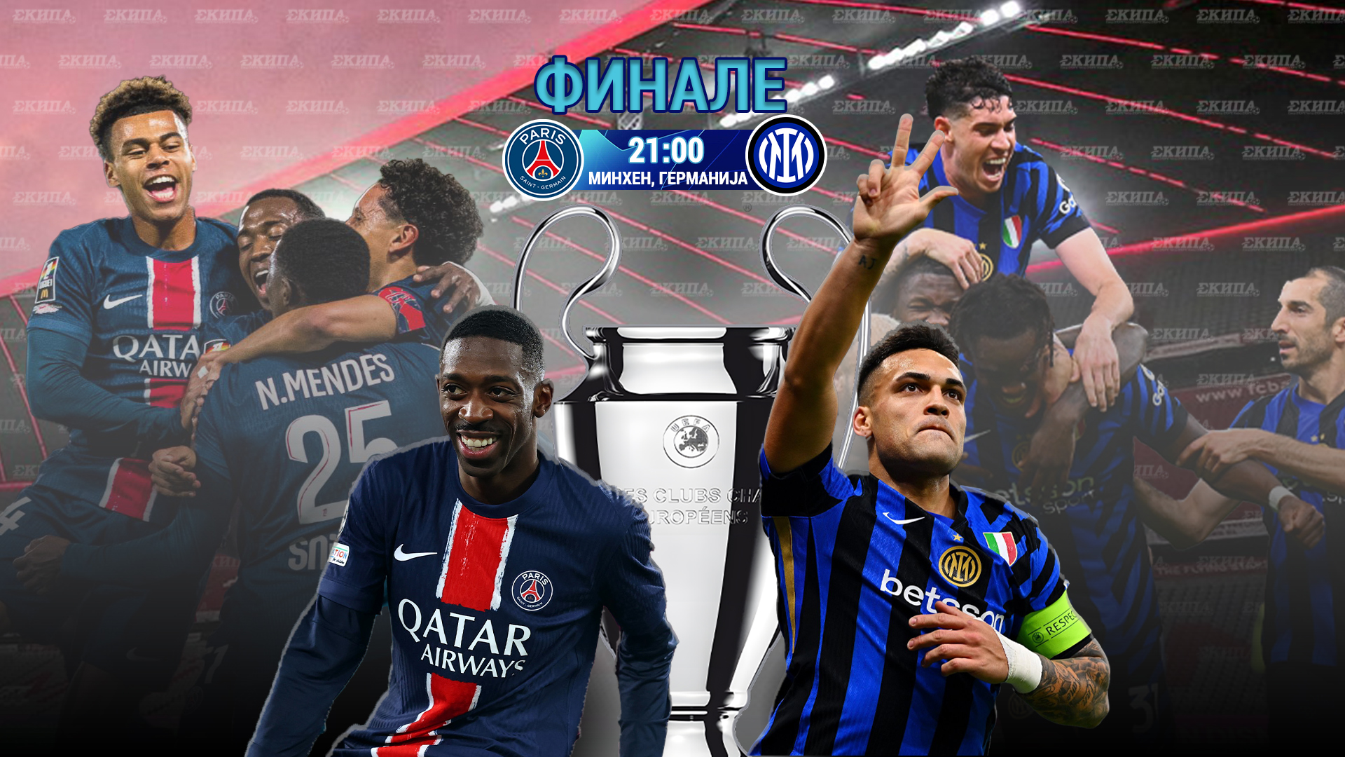 Фудбалерите на Пари Сен Жермен и Интер вечерва ќе се сретнат во Минхен во финалниот натпревар од Лигата на шампионите.