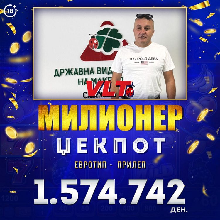 На видеолотариските терминали во Прилеп, нашиот среќен играч Горан Крстевски го освои Милионер Џекпотот во вредност од 1.574.742 денари!
