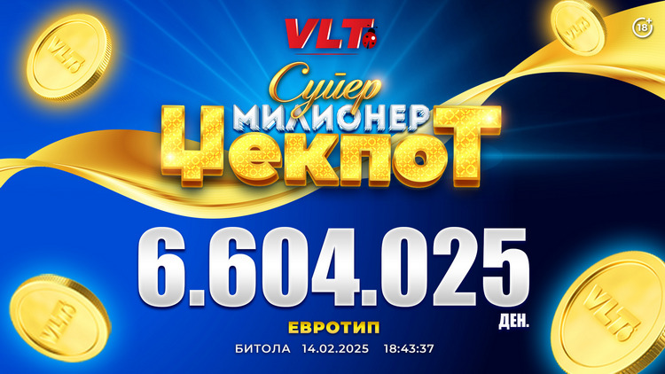 Празнична радост за П.Ѓ од Битола. Тој на 14.02.2025. ја освои најпосакуваната ВЛТ добивка- СУПЕР МИЛИОНЕР џекпот, вреден 6.604.025 денари. Една од најчесто играните игри, Брнинг хот се покажала како среќна и во неговиот случај. Добивката е освоена на видеолотарските терминали кај нашиот деловен соработник Евротип во Битола.