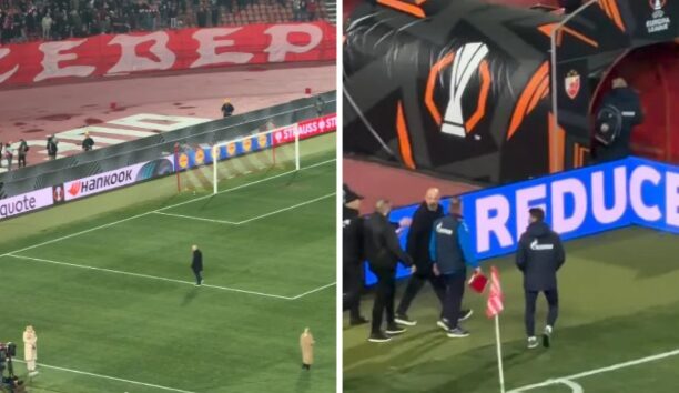 Се појави видео на кое се гледа како тој го напушта теренот вознемирен додека влегува во вербална конфронтација со дел од навивачите од западната трибина.