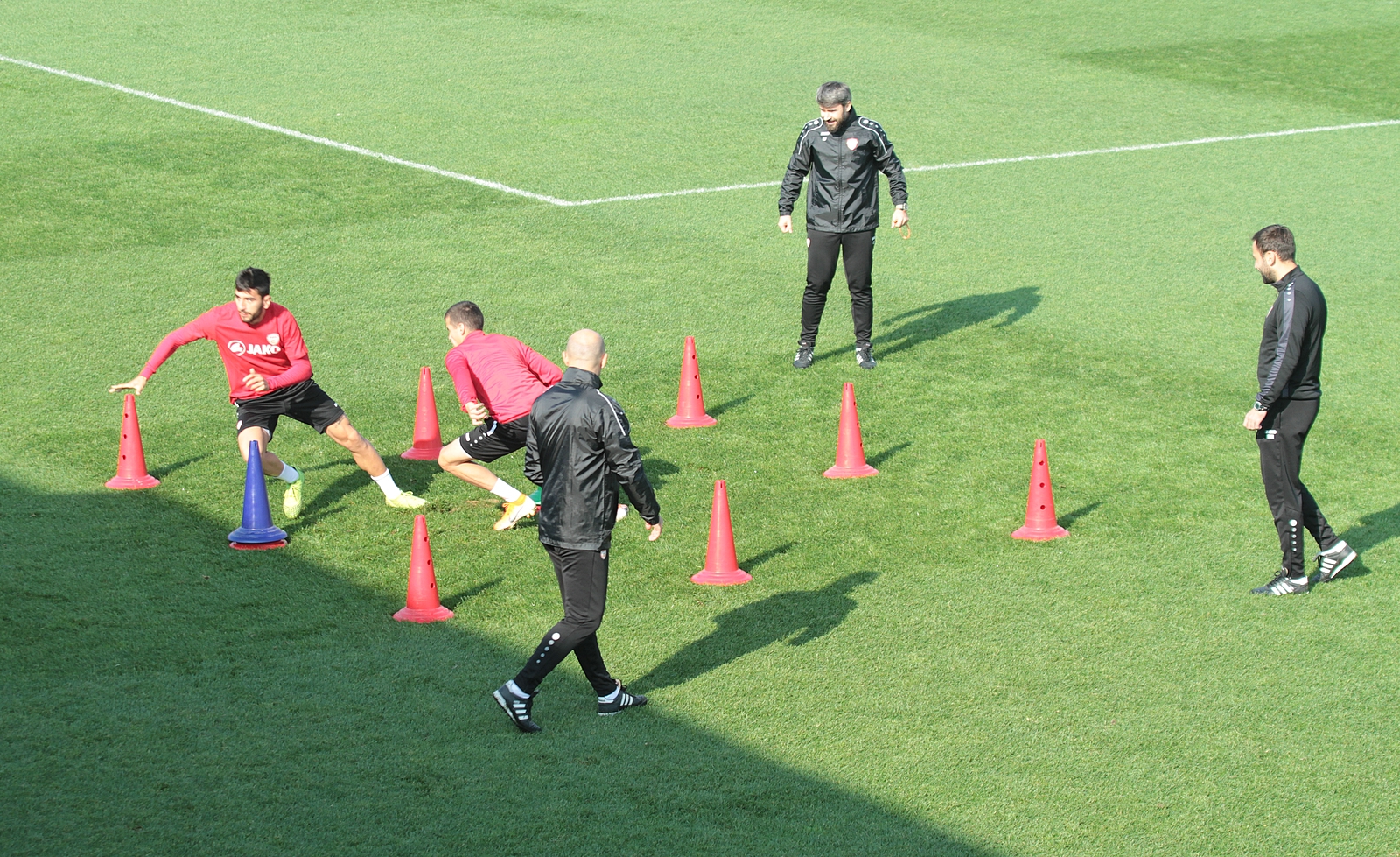 Специфични тренинг активности сервираше селекторот Игор Ангеловски заедно со стручниот штаб, повеќе како забава за фудбалерите пред финалната тактичка подготовка за мечот против Израелците. А, тука во прв план капитенот Горан Пандев со секогаш дополнителна анимација на соиграчите.