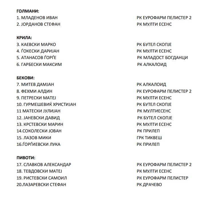 Предводникот на младинската репрезентација на Македонија, Наум Танески, го објави списокот на ракометари за претстојната ЕХФ-недела.