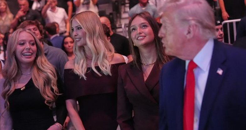 Трамп беше во друштво на ќерките Иванка и Тифани Трамп, како и внуките Арабела Кушнр и Каи Трамп.