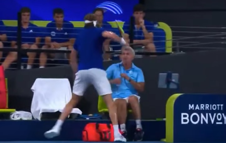 Стефанос Циципас ги загуби нервите по загубениот тајбрејк во првиот сет од дуелот со Ник Кирјос, во рамките на АТП Купот, а подебелиот крај го извлече неговиот татко Апостолос.