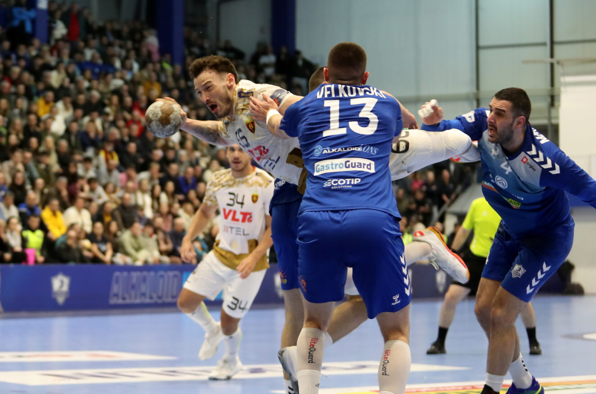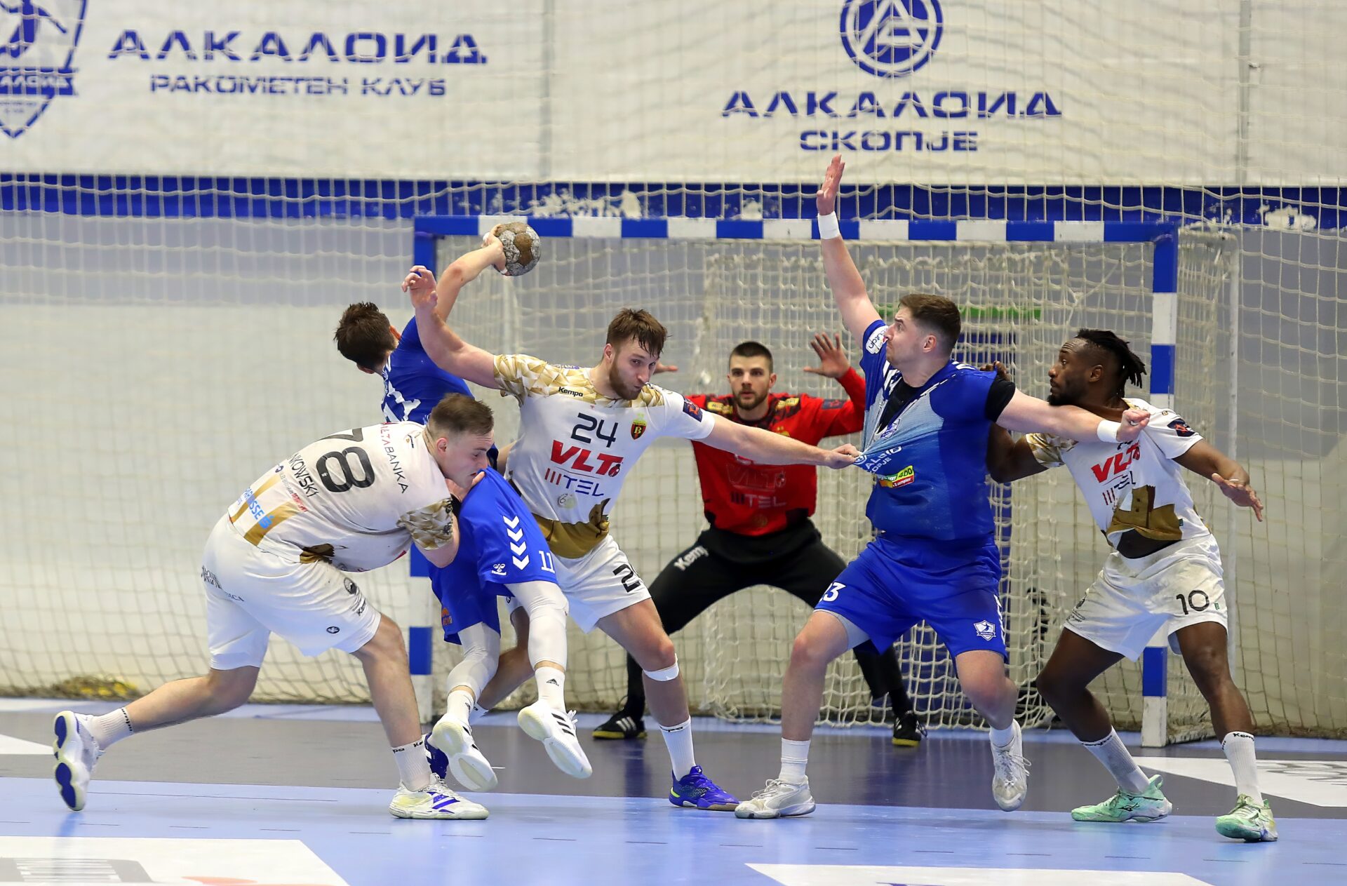 Во првото полувреме Вардар главно го имаше водството, но истото не беше повеќе од два гола разлика. Се играше главно гол за гол, а на полувремето „црвено-црните“ ја имаа предноста од 14-13.