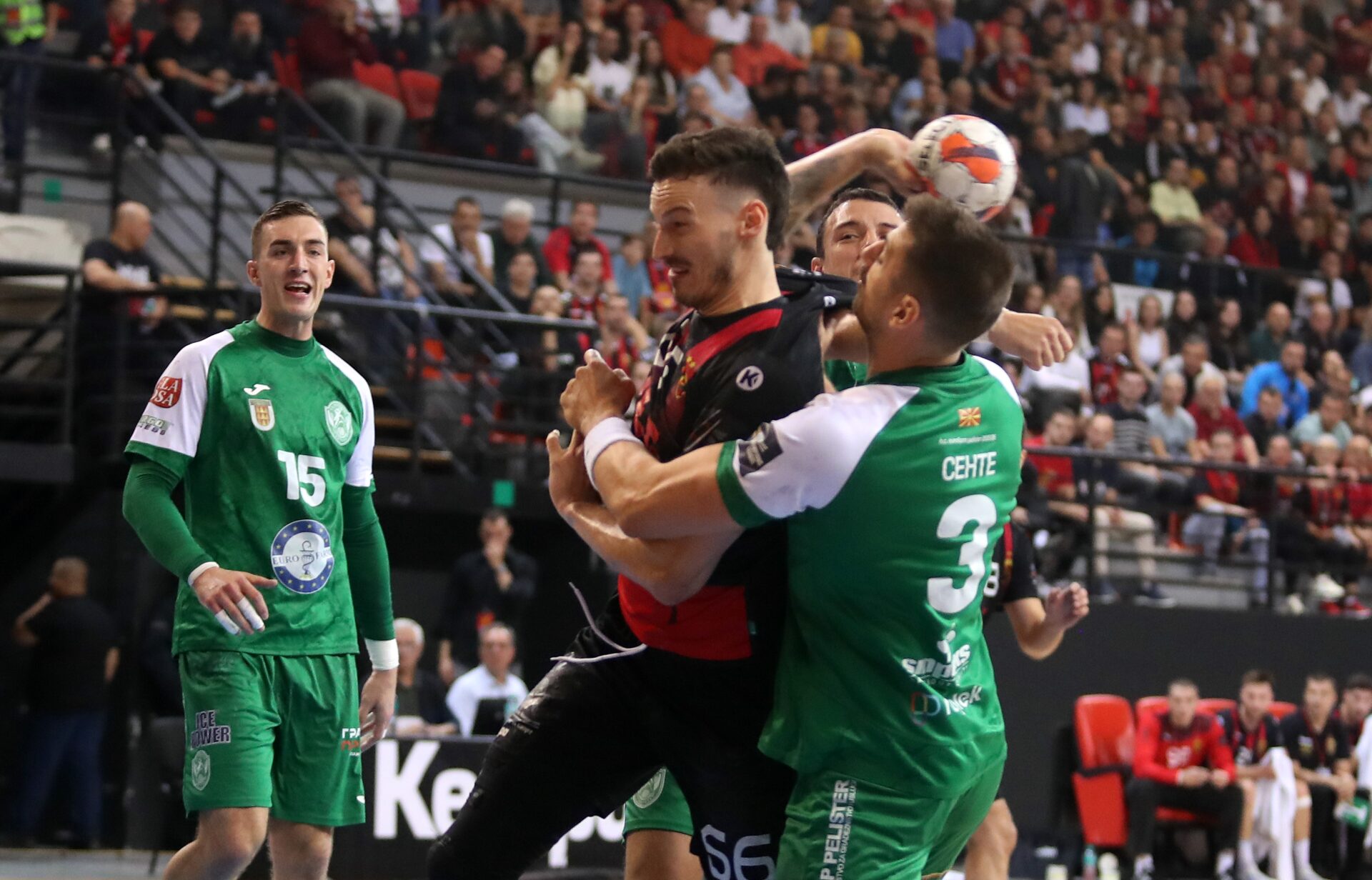Откако во воведните две минути двата тима одиграа гол за гол (2-2), прв поголема разлика направи домаќинот кој со серија од три гола во 7. минута поведе со 5-2 по што следуваше првиот тајм-аут на тренерот на гостите Гарабаја. По тајм-аутот се стабилизираа гостите, па на влезот во 12. минута стигнаа до негатива од само еден гол 6-5. Токму во овој момент се случи мала искра на теренот по која Вуко Борозан доби директен црвен картон. Црвениот картон како да им даде дополнителна сила на домаќините кои во следниот период повторно стигнаа до плус три (8-5). Во следниот период домаќинот ја држеше предноста од три гола, а по погодокот на Цехте за 11-9 во 20. минута, првпат пауза од шеесет секунди побара и домашниот тренер Иван Чупиќ.