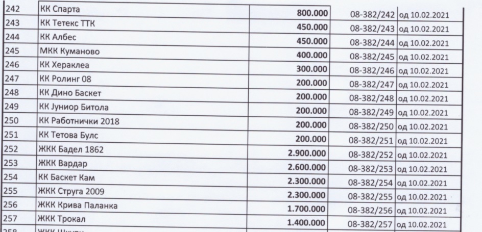 ЖКК Бадел е женскиот колектив со највисок ваучер, вкупно 2,9 милиони денари, пред ЖКК Вардар со 2,6 милиони денари и Баскет Кам и Струга со по 2,3 милиони денари.