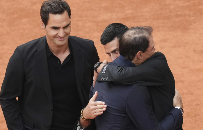 Тениските гиганти на 21. век, Новак Ѓоковиќ, Роџер Федерер и Енди Мареј вчера ненајавено се појавија на церемонијата во Париз, во чест на 14-кратниот шампион на Ролан Гарос, Рафаел Надал.