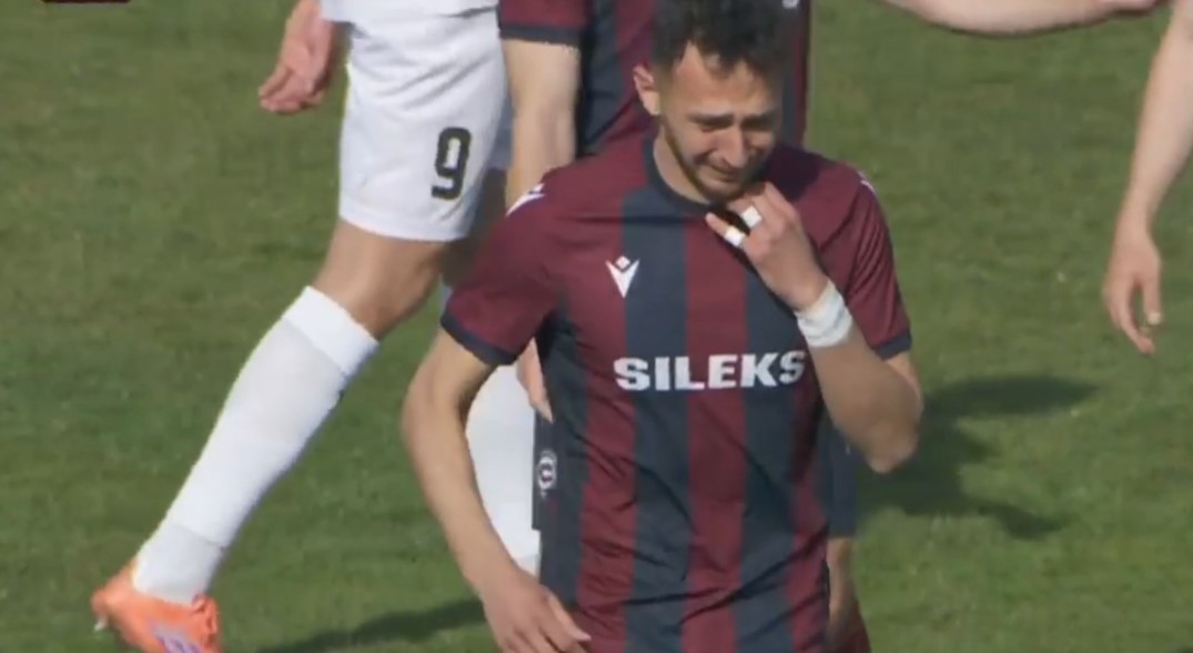 Фудбалерот на Силекс, Дарко Додев во солзи го напушти теренот во Кратово на мечот против Силекс, откако доби црвен картон во 26. минута од средбата.