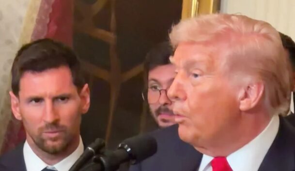 Додека Трамп беше во својот филм, изразот на лицето на Меси кажува сè.