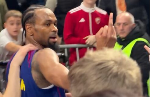 Додека го напушташе паркетот, по нова провокација од трибините, им покажа среден прст на поединци од навивачите на Црвена Звезда.