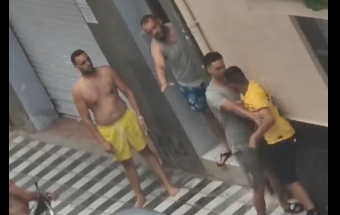Momento en el que la policía llega para separar la pelea del padre de Lamine Yamal con sus vecinos