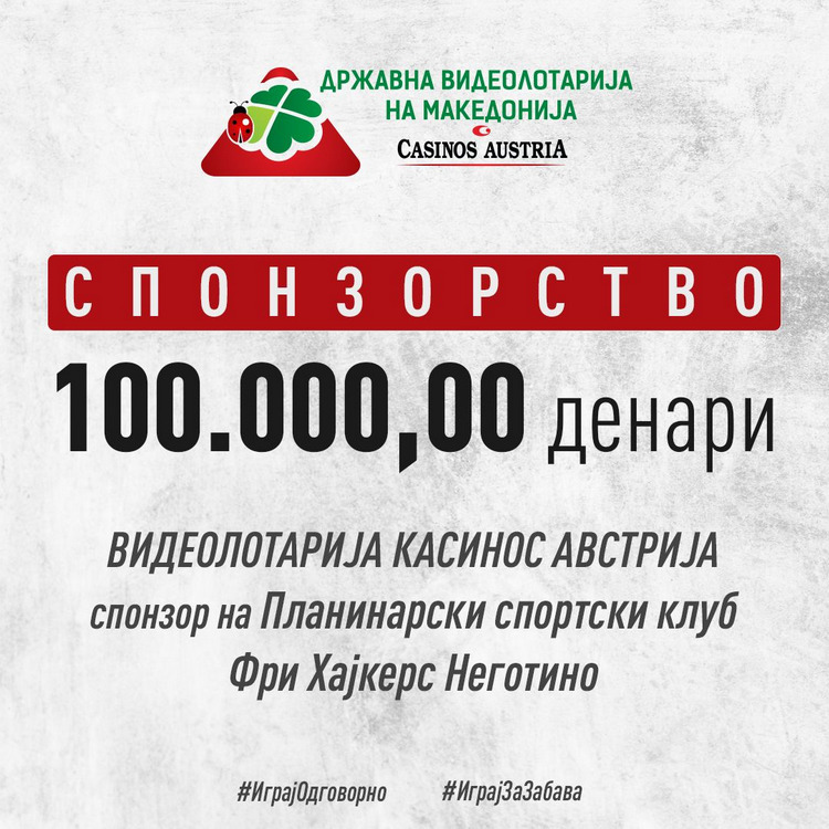 Видеолотарија Касинос Австрија со 100.000,00 денари го спонзорираше планинарскиот клуб Фри Хајкерс.