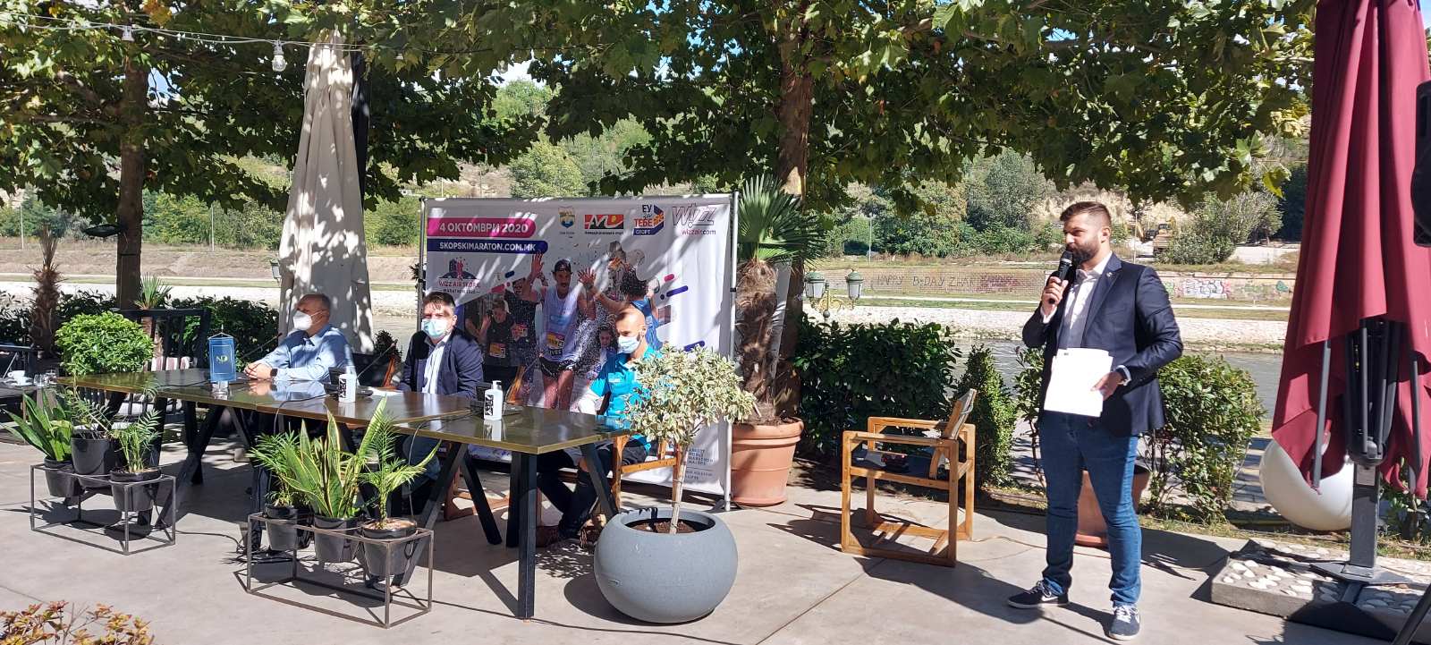 Прес конференцијата се одржа на терасата на хотел Парк, каде што свое обраќање имаше и градоначалникот на Град Скопје, Петре Шилегов и Александар Кираџиев, национален првак во маратон во нашата земја неколку години по ред. Градоначалникот на Град Скопје, Петре Шилегов истакна дека со големо задоволство Град Скопје е повторно традиционален домаќин и покровител на Виз Ер Скопски маратон.