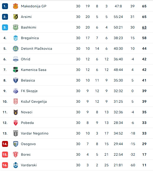 Башкими славеше на гостувањето кај Брегалница со 0-1 и со тоа обезбеди бараж за ПМФЛ каде ќе игра со Беса. Натпреварот помина во сенка на тешката повреда на фудбалерот на гостите и стрелец на голот за Башкими, Емир Aсани. Третолигаши одамна се Борец и Вардарски, додека Осогово ќе игра бараж за опстанок во ВМФЛ.