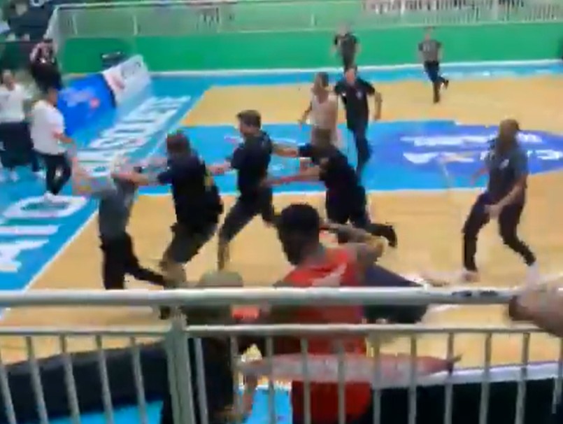 Натпреварот помеѓу Пато Баскет и Каксијас во прволигашкото бразилско првенство го одбележа инцидент од невидени размери.