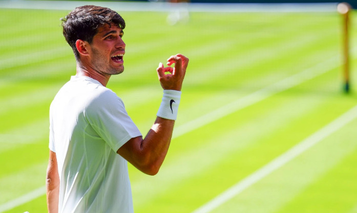 Шпанскиот тенисер Карлос Алкараз, за малку избегна сензационална елиминација на стартот на Вимблдон. Успеа некако да дојде до победа против Италијанецот Фабио Фоњини дури во пет сета и се пласираше во второто коло, на грандслем турнирот на кој го брани трофехот.