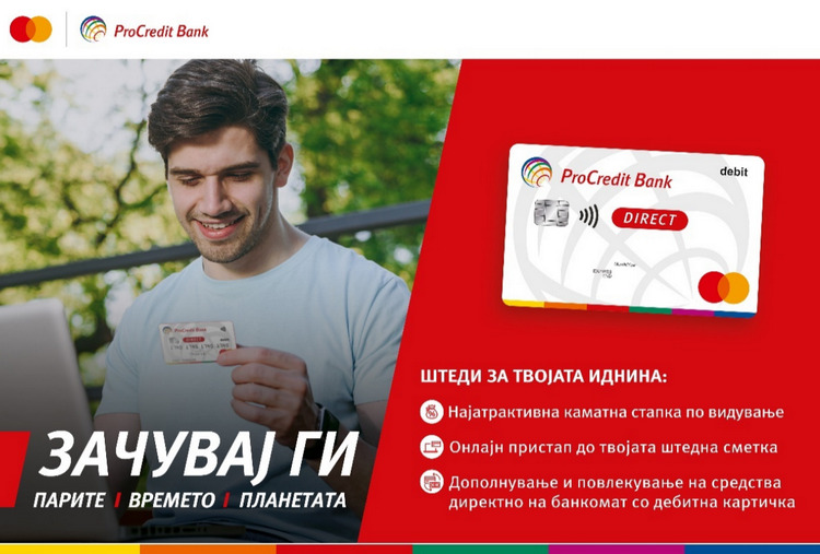 Во месецот на штедењето, ПроКредит започна кампања за промоција на онлајн штедење, еден од уникатните продукти на банката. Под слоганот „Зачувај ги парите, времето, планетата“, заедно со Mastercard, банката ја промовираше услугата Флекси штедна сметка, целосно дигитална банкарска услуга која нуди голем број предности и бенефити за сите нови и постојни клиенти на банката.