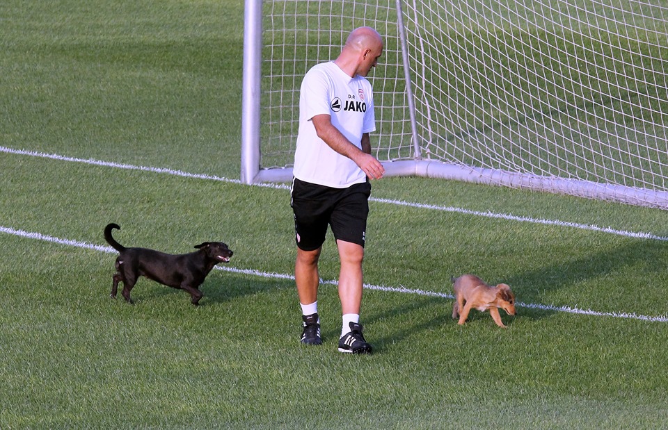 И, нормално услови за тренинг на репрезентативците мора да создаде стручниот штаб. Во суштина, мора се да се работи… Па, ете пред денешниот тренинг членовите на стручниот штаб мораа да се справуваат и со кучиња на комплексот на тренинг центарот на ФФМ.