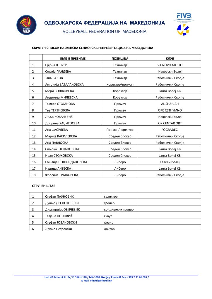 Од поширокиот список на кој се најдоа 24 одбојкарки, селекторот веднаш го „скрати“ на 18 девојки, кои на 20 јули на пладне треба да се стават на располагање во Маврово, на почетокот на подготовките за квалификациите за ЕП 2026.