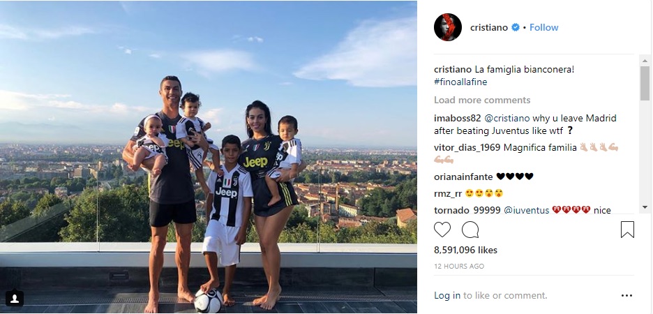 Најдобриот фудбалер во светот објави фотографија со своето семејство на која и неговата вереница Георгина Родригез и четирите деца се облечени во дресови на Јувентус. Роналдо на објавата остави и краток коментар – „црно-бело семејство“.