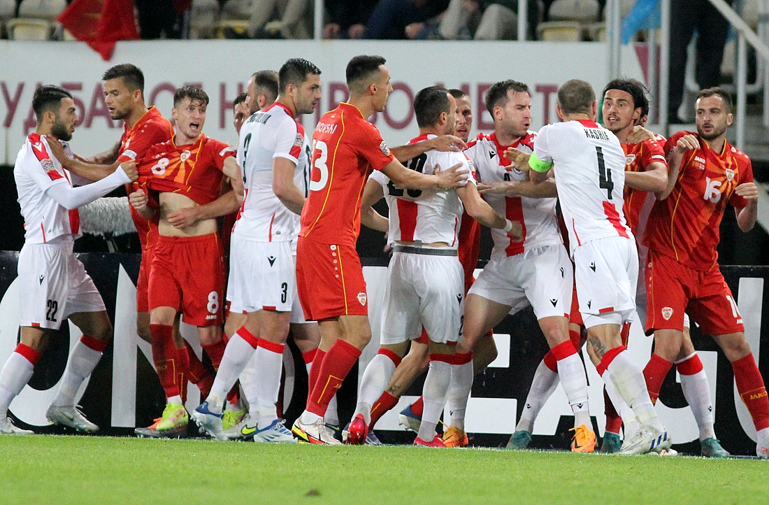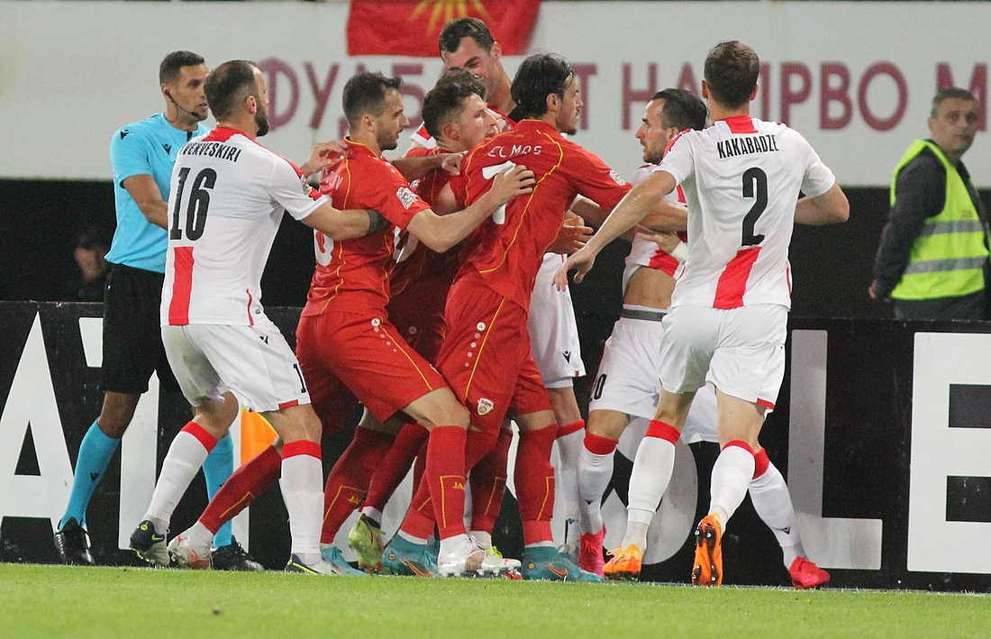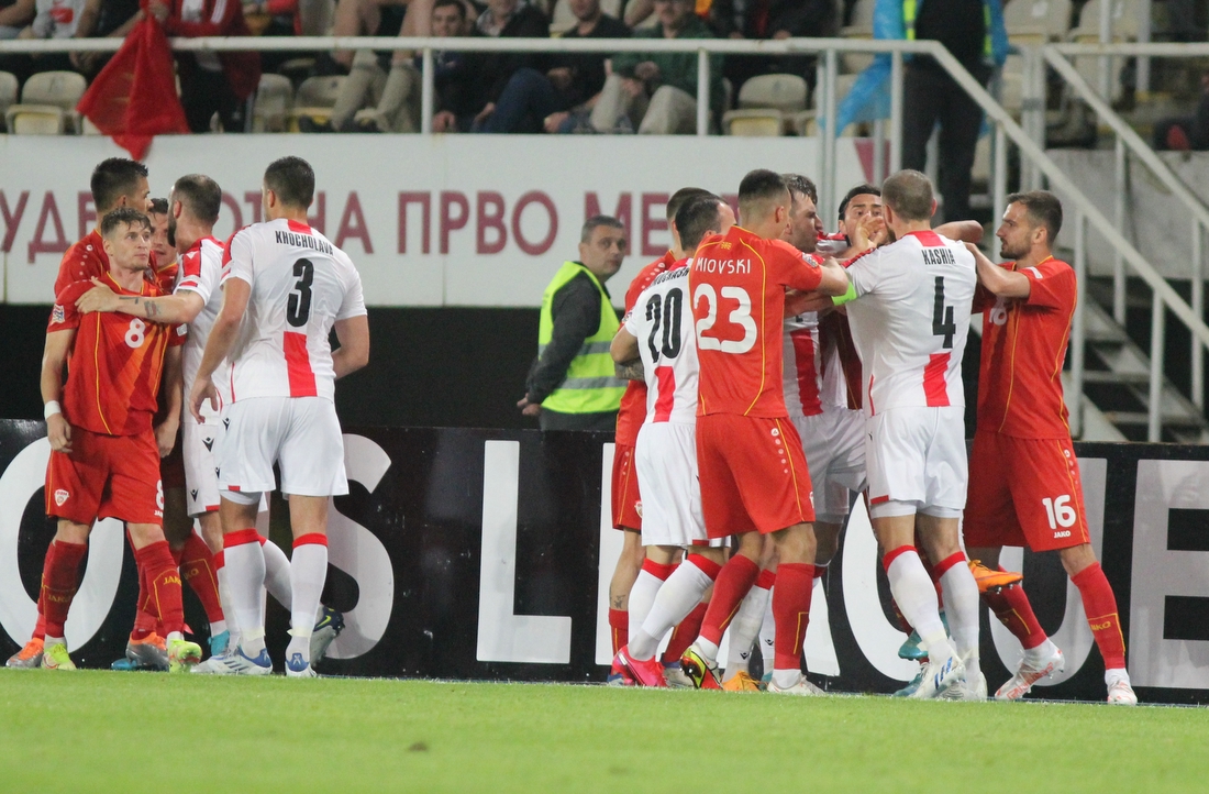 Нервозата во таборот на нашите фудбалери си го направи своето. Енис Барди го удри Квирквелија, по што настана мал инцидент во кој беа вклучени сите актери на теренот.